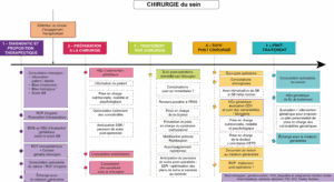 Figure 1 – Parcours de soins au CHU de Nîmes des patientes âgées de 70 ans et plus en cas de chirurgie pour cancer du sein.