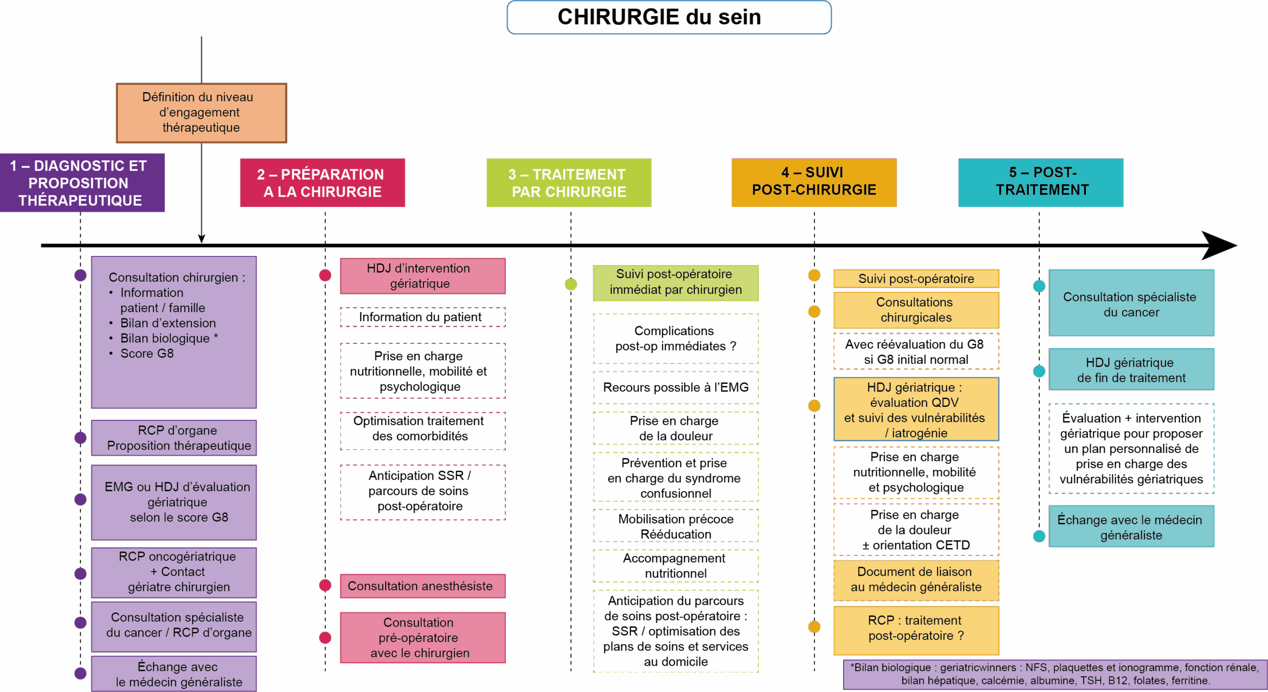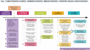 La modélisation du parcours de soins des patientes âgées présentant un cancer du sein vise à articuler au mieux les interventions multidisciplinaires et pluriprofessionnelles nécessaires aux différentes étapes de la prise en charge.