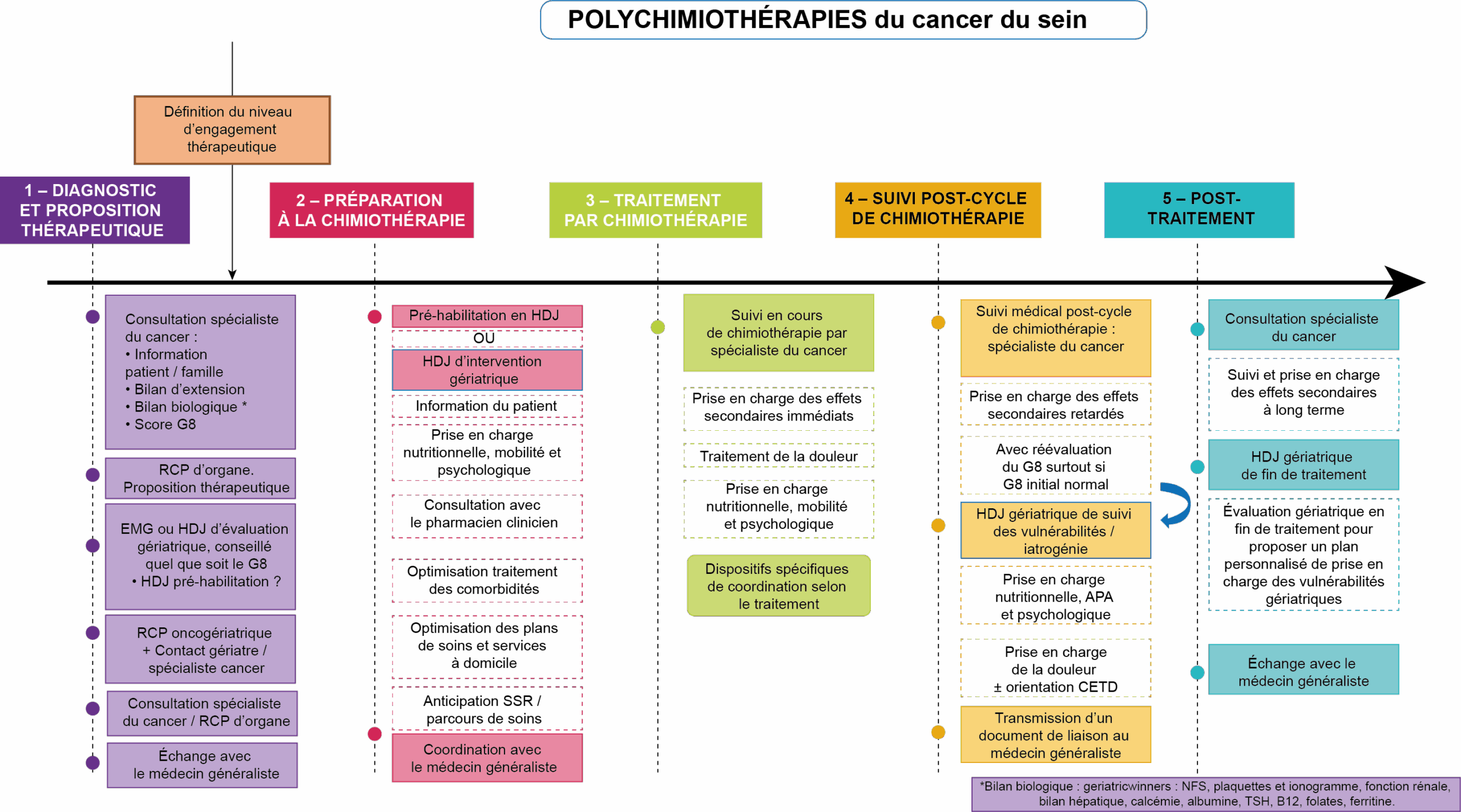 Figure 2 – Parcours de soins au CHU de Nîmes des patientes âgées de 70 ans et plus en cas de polychimiothérapie pour cancer du sein.