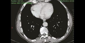 Nous rapportons ici de curieuses opacités multiples lobaires supérieures, découvertes fortuitement sur un cliché pulmonaire réalisé dans le cadre du bilan infectieux d’une femme âgée de 85 ans