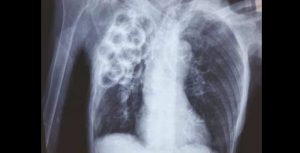 De curieuses opacités pulmonaires en grappe de raisins