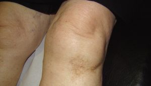 Mme P., 79 ans, consulte, car elle souffre de ses 2 genoux. Lors de l’examen de ces derniers, nous sommes frappés par la présence d’un placard de couleur brune sous…
